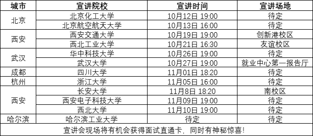 今年校园招聘流程为:简历投递(网申)——宣讲会——简历筛选——笔试——初面——终面——测评——offer发放——体检——签订三方协议——准员工关怀计划。